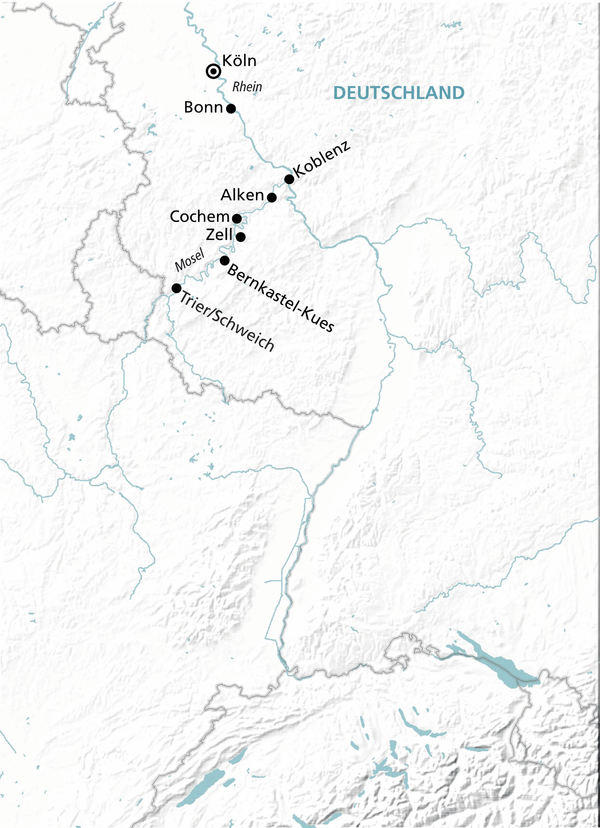 Köln - Cochem - Zell - Trier/Schweich - Bernkastel-Kues - Alken - Koblenz - Bonn - Köln