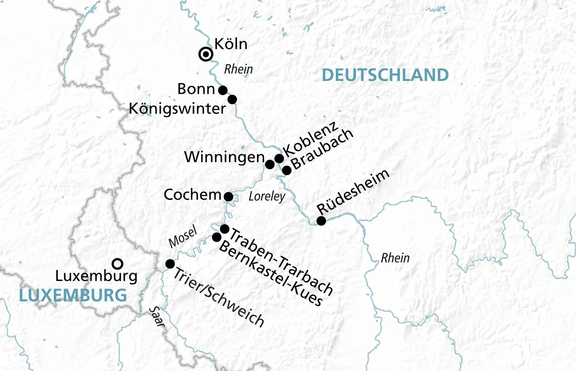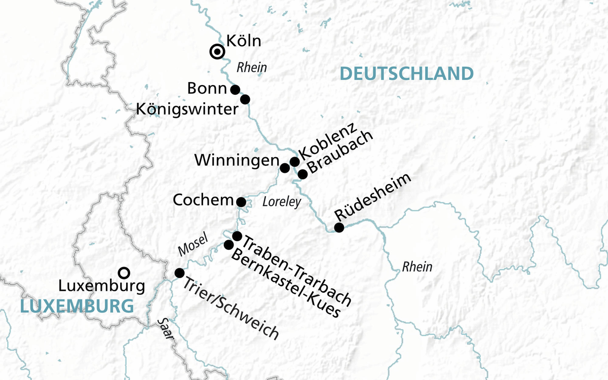 Köln - Koblenz - Cochem - Traben-Trarbach - Trier/Schweich - Bernkastel-Kues - Bonn - Köln