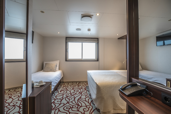 Zusätzlich zu den in der Preistabelle aufgeführten Kategorien mit dem Vermerk "Einzel" oder "2-Bett zur Alleinbenutzung" kann jede weitere Kategorie zum Gesamtpreis der Kabine zur Alleinbenutzung belegt werden. Kurzfristig werden Zweibettkabinen nach Verfügbarkeit zur Einzelbelegung angeboten (Zuschlag 50% auf den Passagepreis).