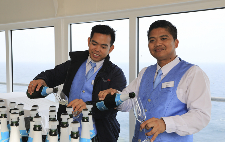 Ab einer Reisedauer von 7 Tagen erhalten Sie zusätzlich folgenden Service: 1x Sekt-Kabinen-Frühstück pro Person/ Reise, Kapitänsempfang, Einladung zum Kapitänstisch (Kat. W), 1x 25 Minuten Massage oder Beauty-Behandlung pro Person/Reise, kostenloser Wäscheservice. Falls bei Flügen Business-/First-Class möglich ist, erhalten Sie das Angebot bevorzugt.