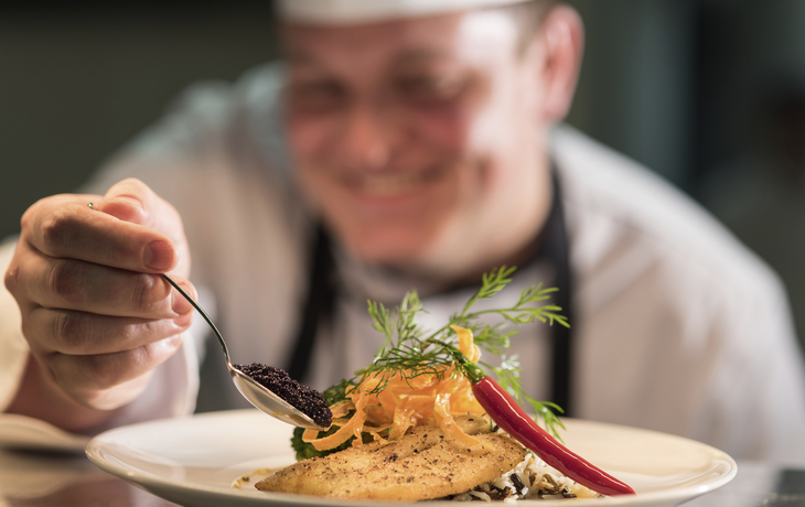 • Vollpension an Bord (beginnend mit dem Abendessen des ersten Tages, endend mit dem Frühstück am letzten Tag): Frühstücksbuffet, mehrgängiges Mittag- und Abendessen, Nachmittagskaffee/Tee, Mitternachtssnack. Gehobene europäische Küche.