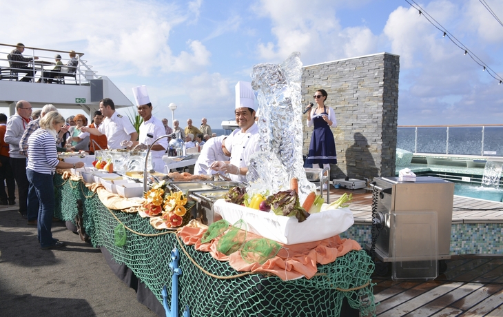 Ab einer Reisedauer von 7 Tagen erhalten Sie zusätzlich folgenden Service: 1x Sekt-Kabinen-Frühstück pro Person/ Reise, Kapitänsempfang, Einladung zum Kapitänstisch (Kat. W), 1x 25 Minuten Massage oder Beauty-Behandlung pro Person/Reise, kostenloser Wäscheservice. Falls bei Flügen Business-/First-Class möglich ist, erhalten Sie das Angebot bevorzugt.