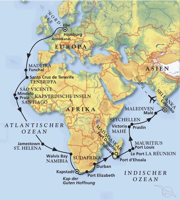 Etwa eine Stunde Fahrt in nördliche Richtung nach Negombo, an der Westküste Sri Lankas gelegen. Der ehemalige Fischerort hat sich zu einem wichtigen Geschäftszentrum entwickelt. Im Stadtzentrum leben mittlerweile knapp 150.000 Menschen. Negombo ist für seine Fischmärkte und die langen Sandstrände bekannt. Sie erreichen ein Strandhotel. Genießen Sie die Hoteleinrichtungen und stärken Sie sich beim Mittagsbuffet. Am Nachmittag erholen Sie sich am Strand oder am Pool des Hotels, bevor Sie zum Schiff zurückkehren.