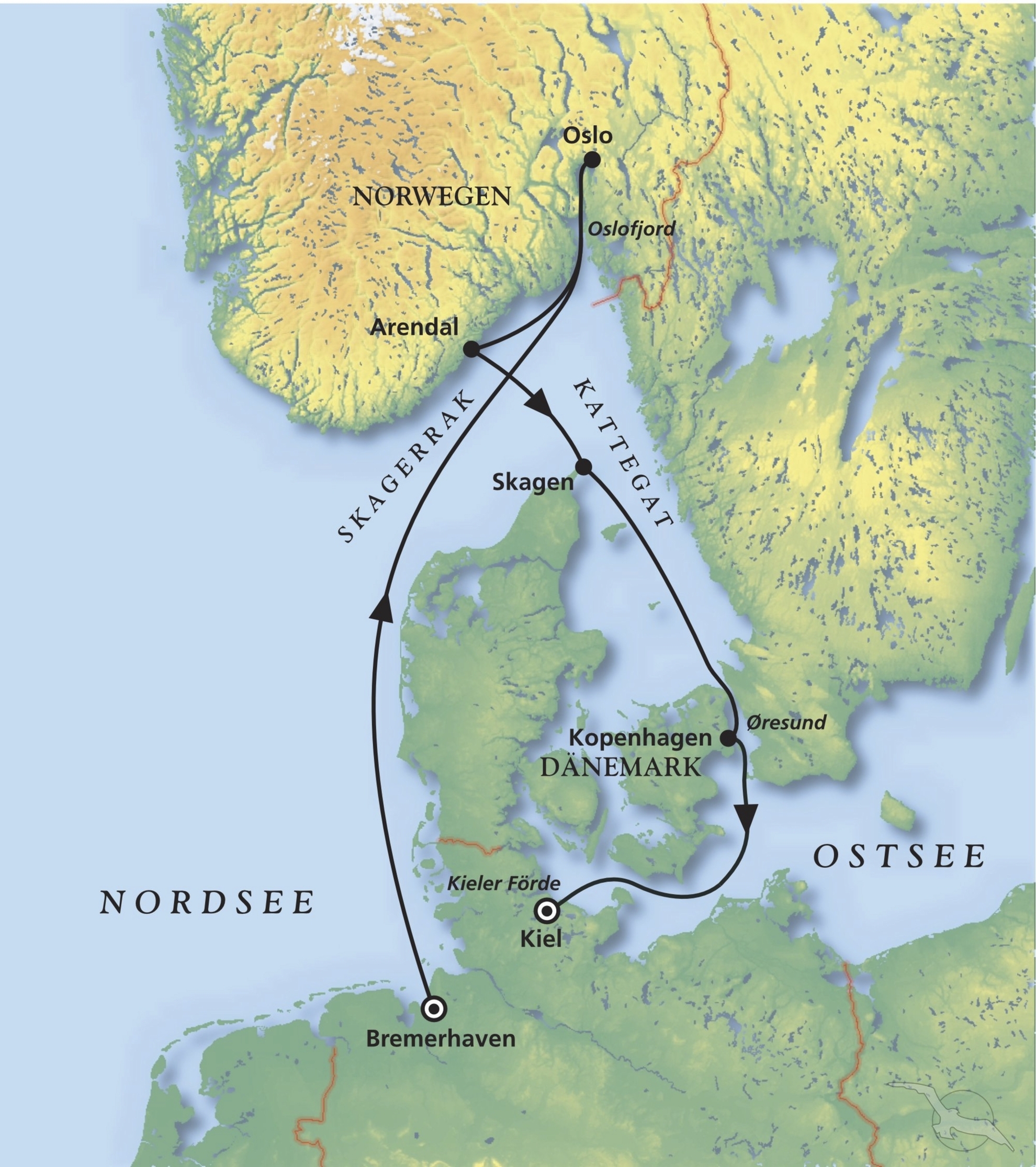 Bremerhaven - Oslo - Arendal - Skagen - Kopenhagen - Kiel
