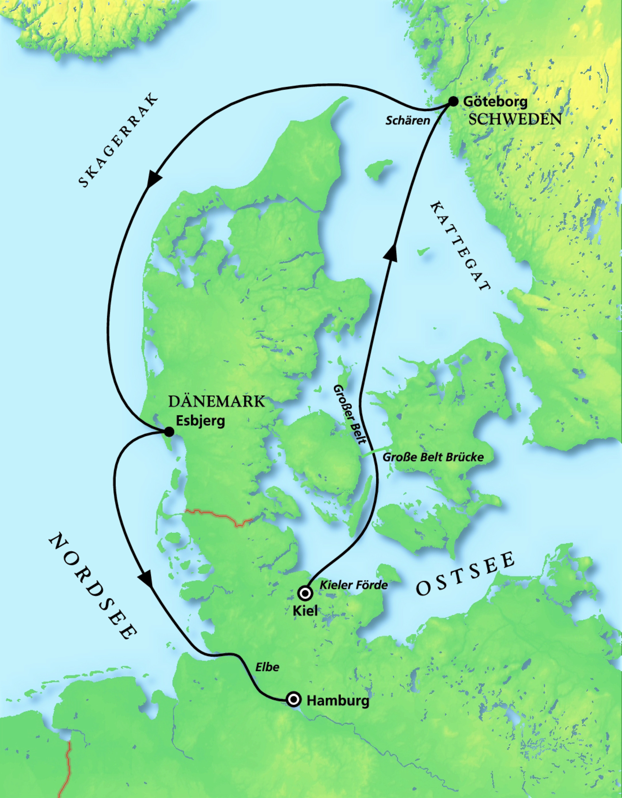 Kiel - Große Belt-Meerenge - Göteborg - Esbjerg - Hamburg