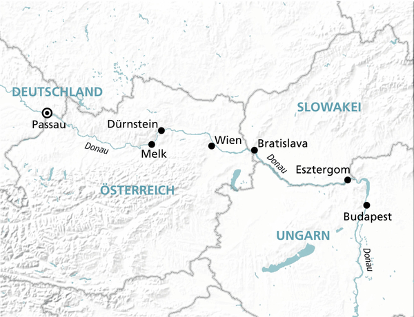 Passau - Dürnstein - Wien - Esztergom - Budapest - Bratislava - Melk - Passau