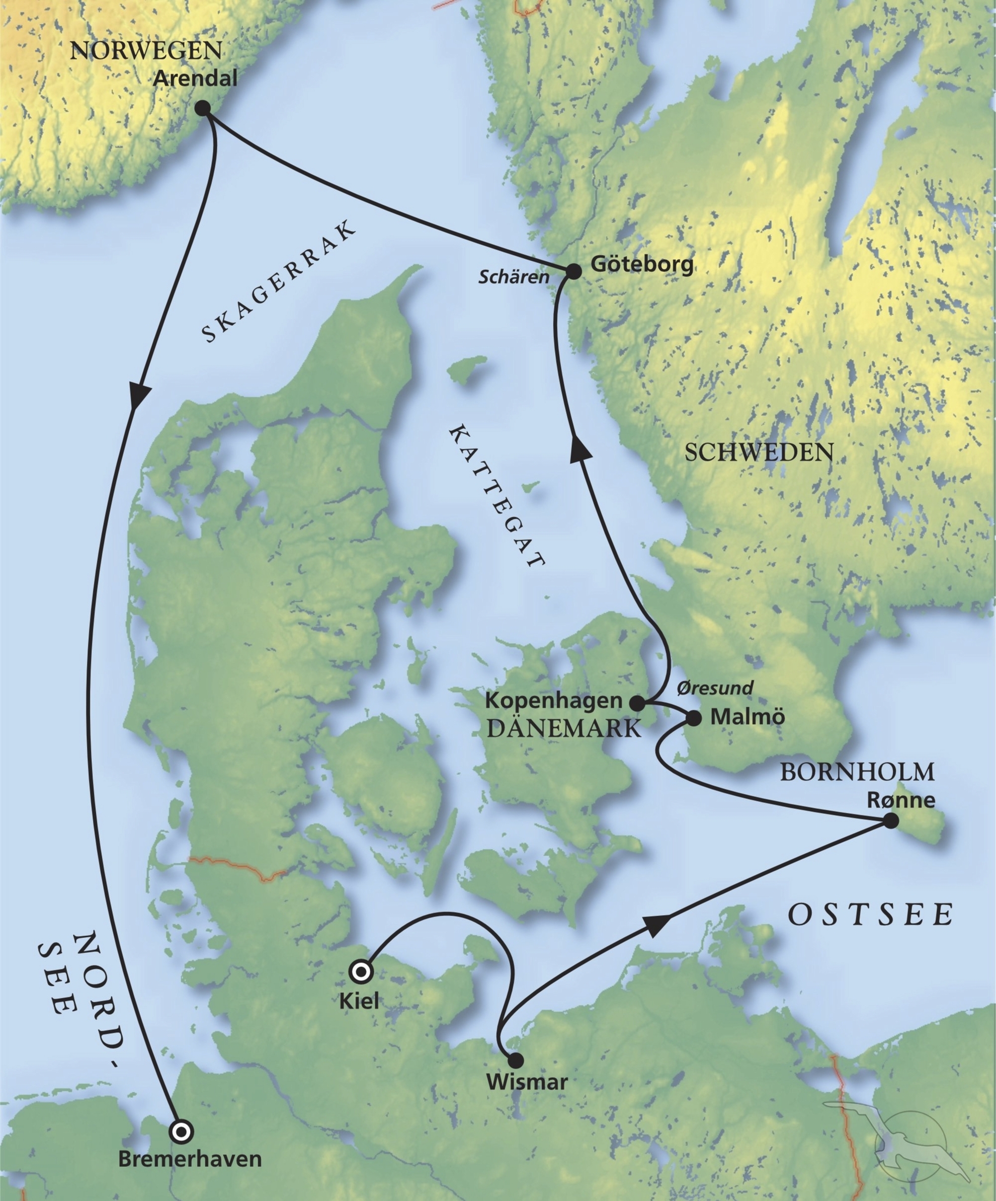 Kiel - Wismar - Ronne - Malmö - Kopenhagen - Göteborg - Arendal - Bremerhaven