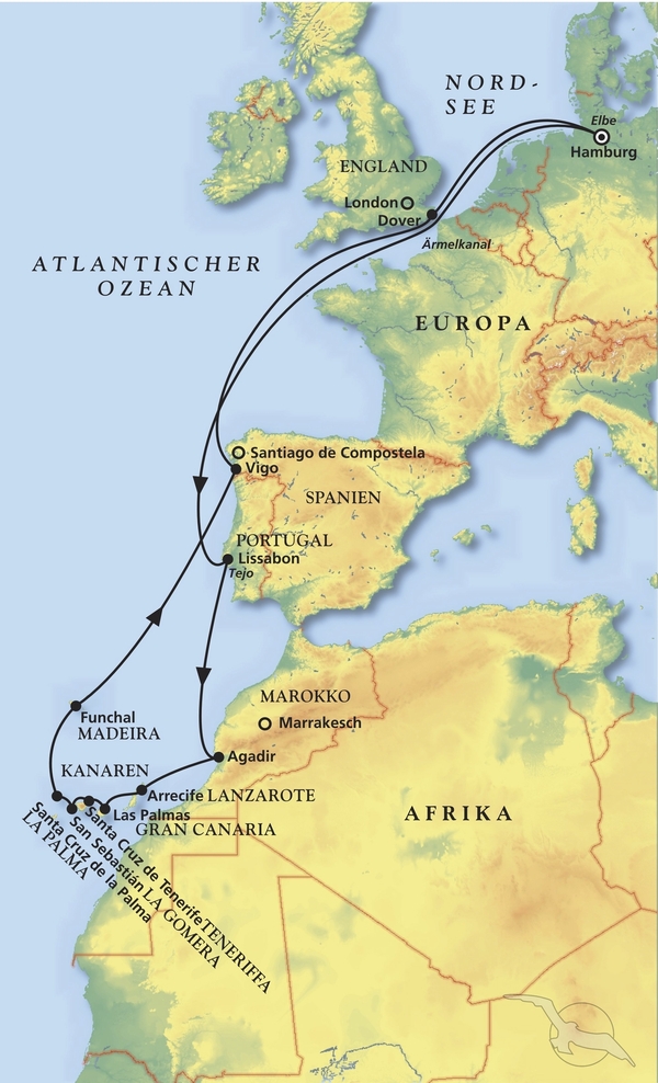 Hamburg / Deutschland - Einschiffung von ca. 15:00 Uhr - 17:00 Uhr |