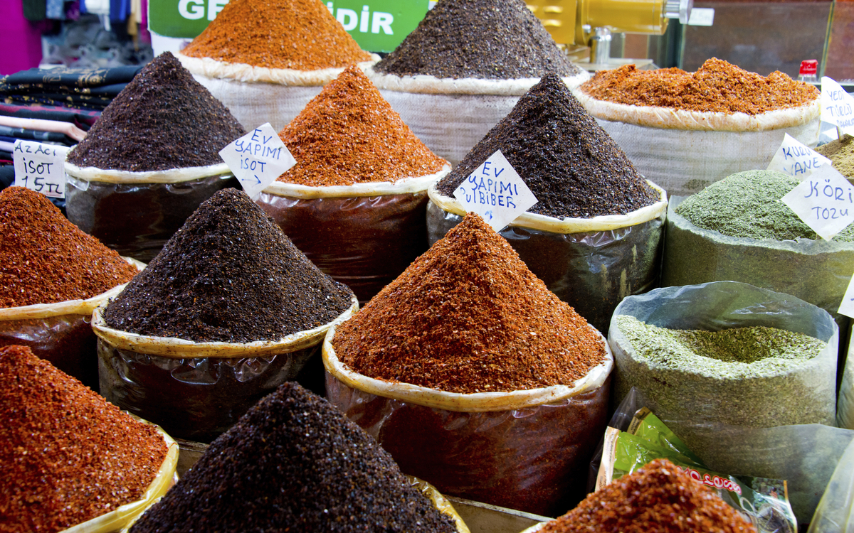 Historische Häuser mit roten Ziegendächern in einer türkischen Stadt