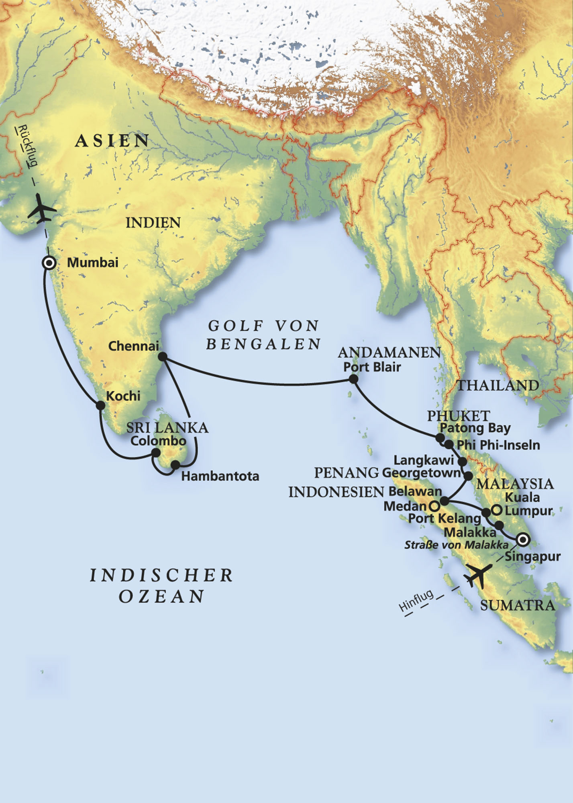 Singapur - Port Kelang - Langkawi - Phi Phi-Inseln - Colombo - Kochi - Mumbai