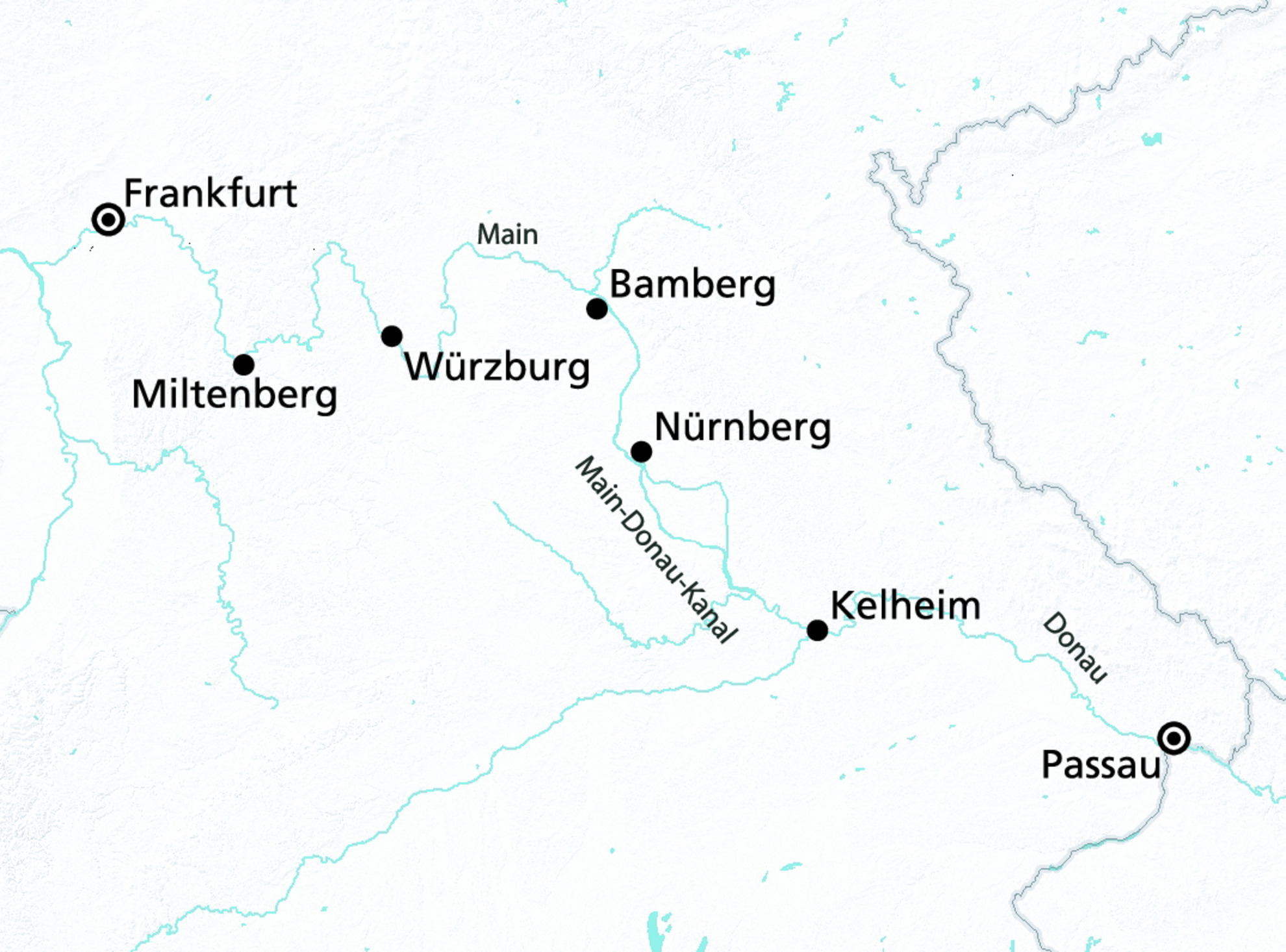 Frankfurt - Miltenberg - Würzburg - Bamberg - Nürnberg - Kelheim - Passau