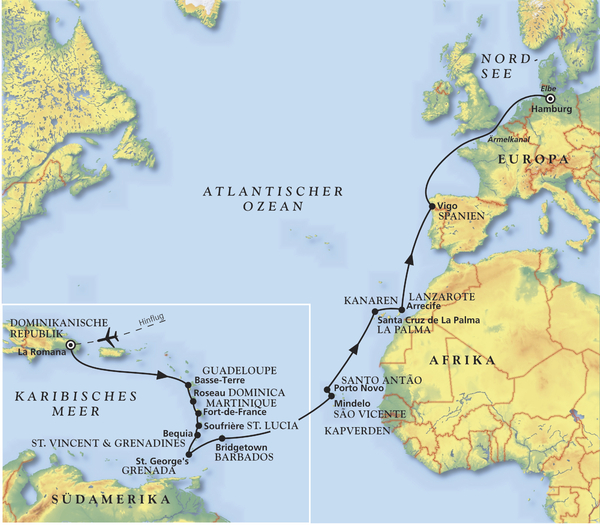 La Romana - Basseterre - Roseau - Bridgetown - Mindelo - Arrecife - Vigo - Hamburg