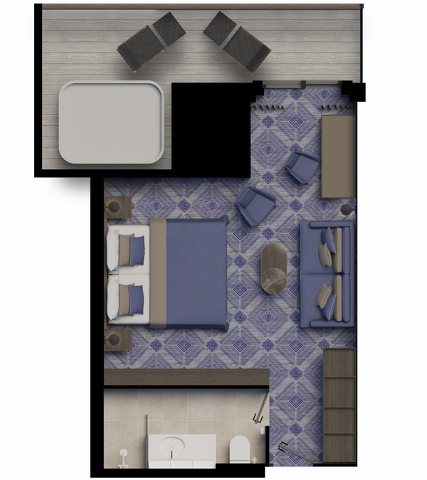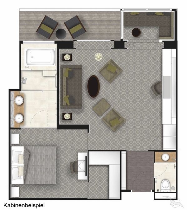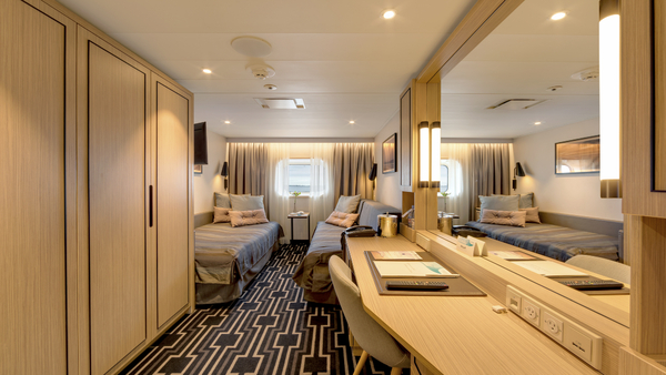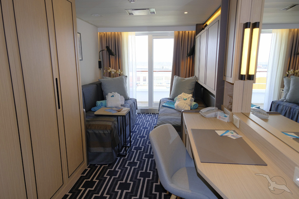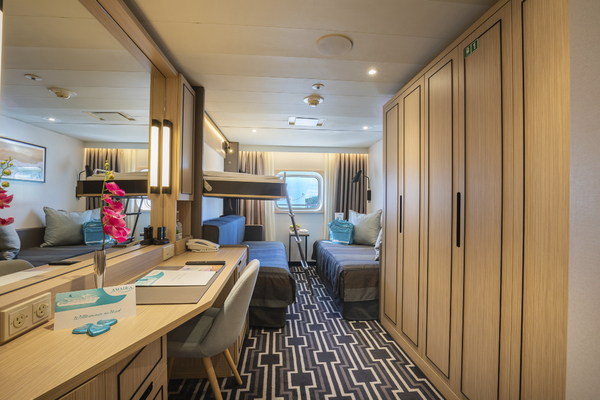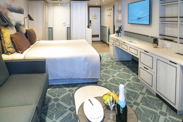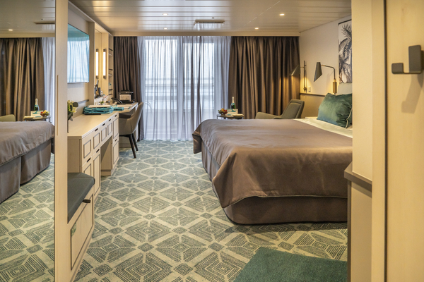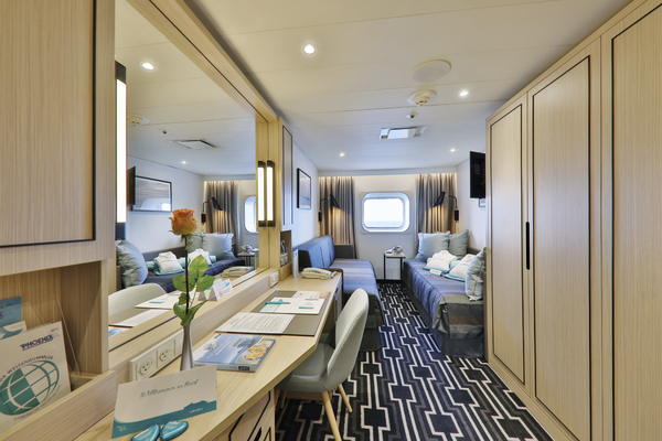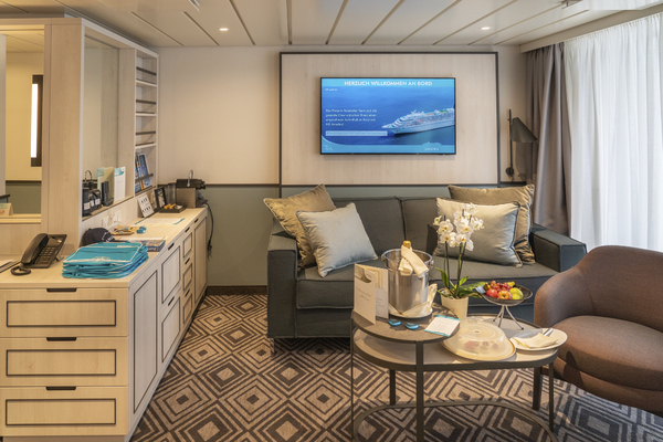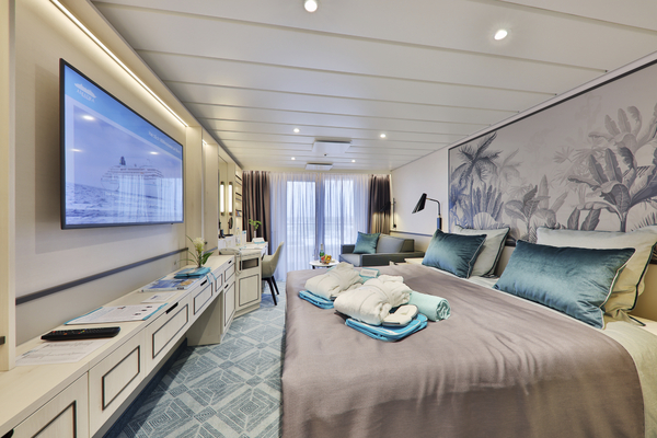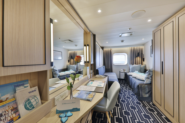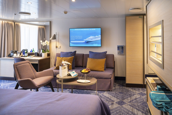 Einige Kabinen verfügen über ein Zusatzbett (1 ZB). Dieses ist ein einklappbares Oberbett. Viele Suiten der Kategorie S, T, T+, TS, U und V verfügen über ein Schlafsofa (1 ZB) bzw. ein großes Schlafsofa für 1-2 Personen (2 ZB). Erwachsener im Zusatzbett 3.000 €, Kinder (2-11 Jahre) 2.000 € und Jugendliche (12-19 Jahre) 2.500 €.