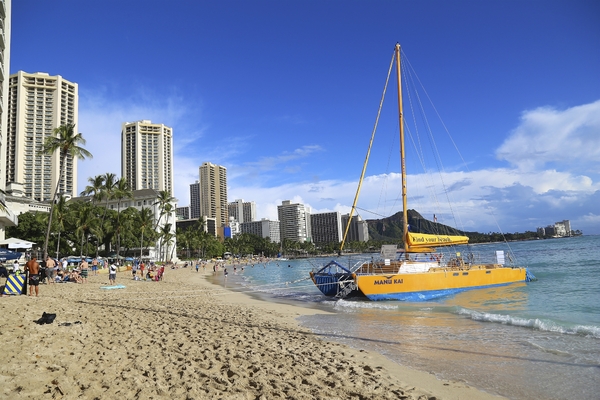 Waikiki Beach in Honolulu mit Blick auf den Diamond Head