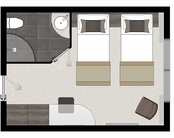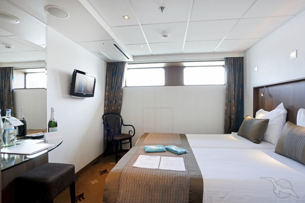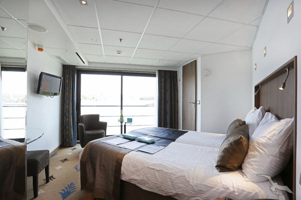 Einige Kabinen der Kategorie G (Oriondeck mit franz. Balkon) verfügen über ein Zusatzbett. Preis Zusatzbett = Preis Kat. A