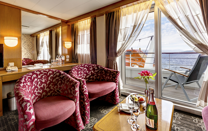 Einige Kabinen der Kategorie G (Oriondeck mit franz. Balkon) verfügen über ein Zusatzbett. Preis Zusatzbett = Preis Kat. A