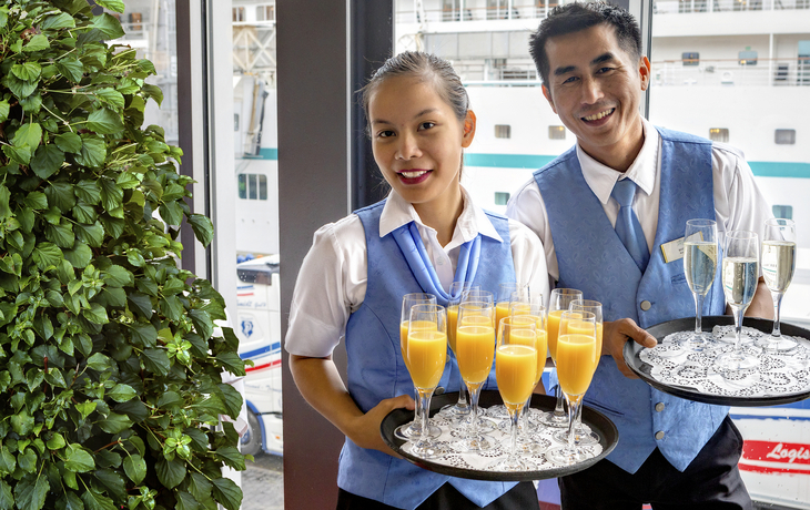 Bei individueller Bahnanreise: In Köln kann ein Transfer vom Schiff zum Bahnhof am Ausschiffungstag für € 10,- pro Person vorab gebucht werden.
