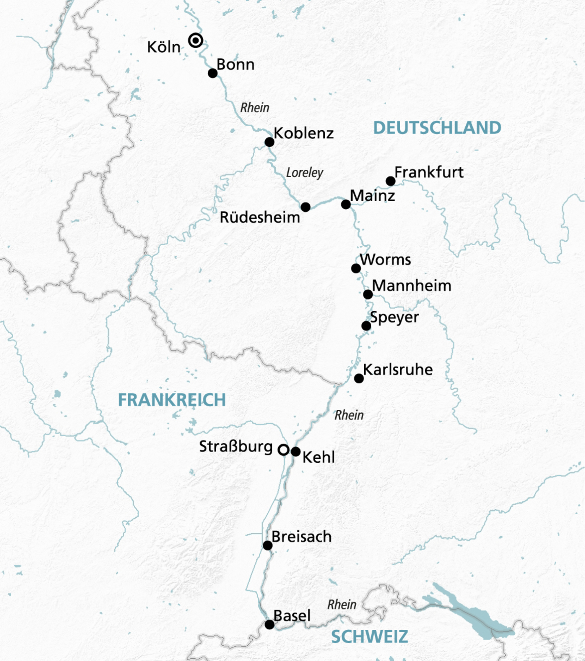 Köln - Mainz - Speyer - Straßburg - Basel - Breisach - Mannheim - Worms - Frankfurt - Rüdesheim - Köln