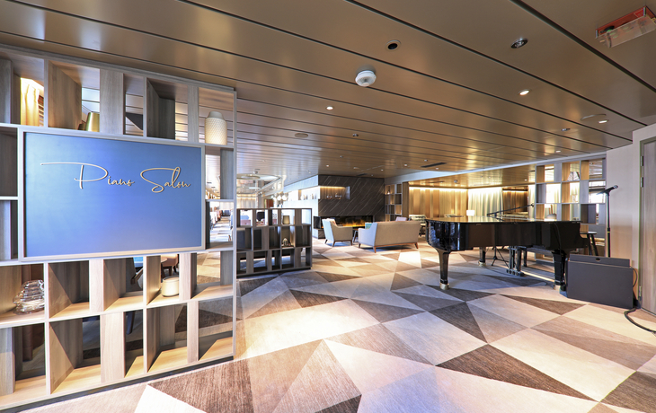 Ausstattung: Dusche/WC, Fön, individuell regulierbare Klimaanlage, SAT-TV (Flachbildschirm), Radio, Kaffeemaschine, Minibar, Safe, Telefon, Bordspannung 230 V Wechselstrom. Kabinengröße ca. 14 - 15 qm.