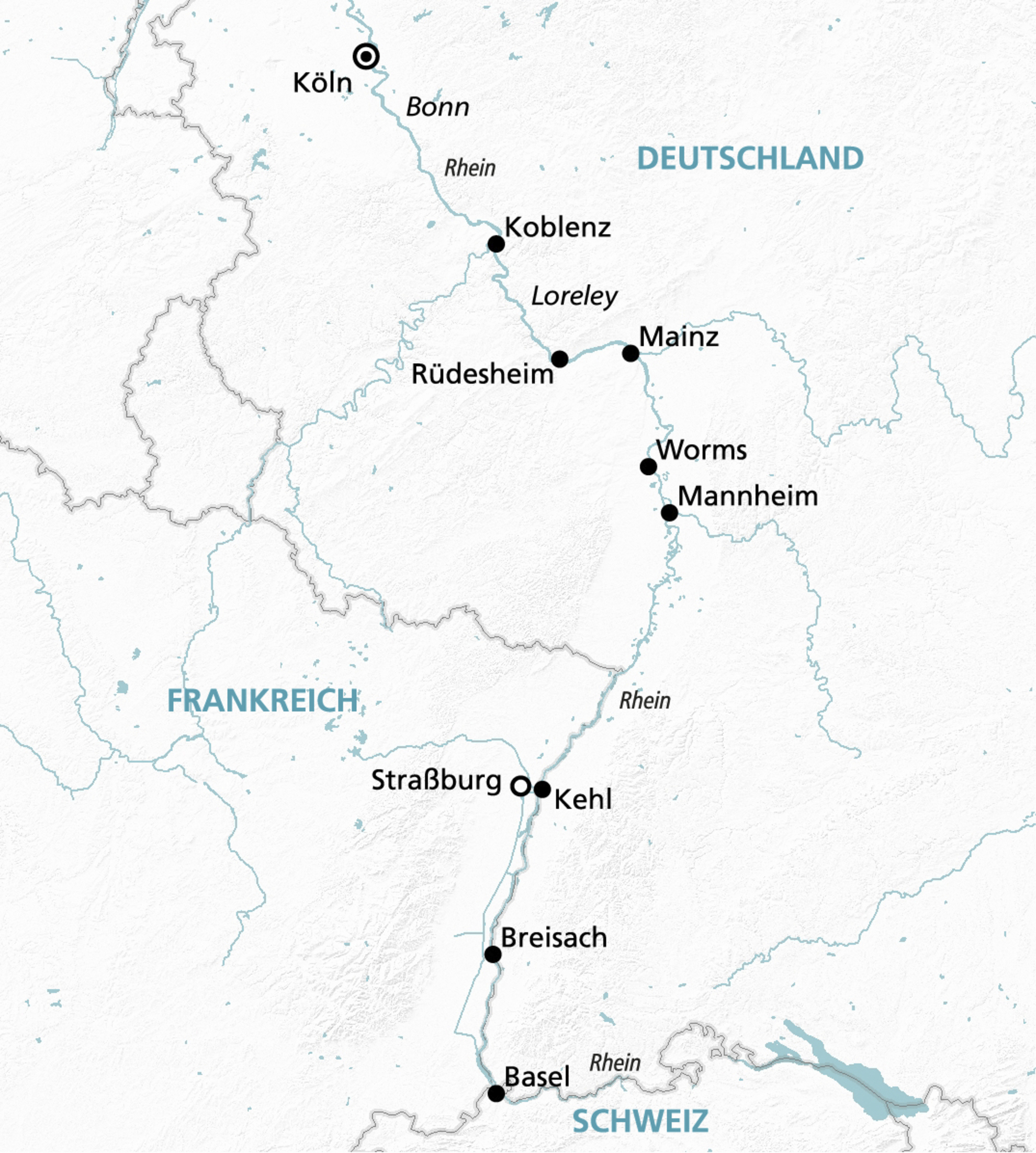 Bei individueller Bahnanreise: In Köln kann ein Transfer vom Schiff zum Bahnhof am Ausschiffungstag für € 10,- pro Person vorab gebucht werden.