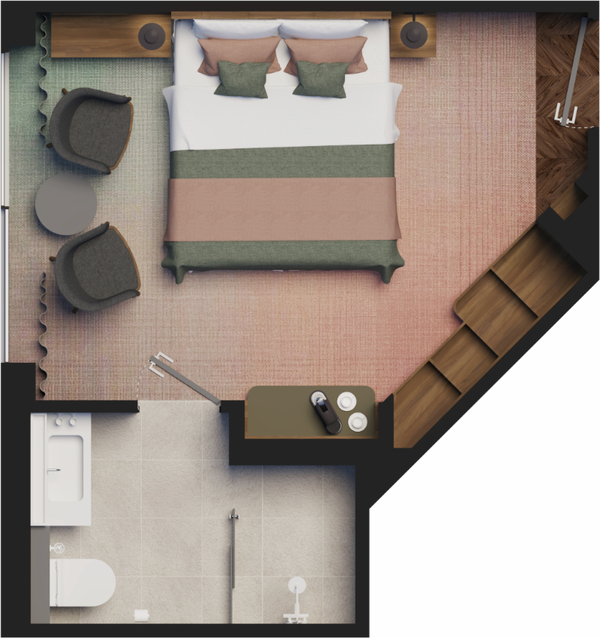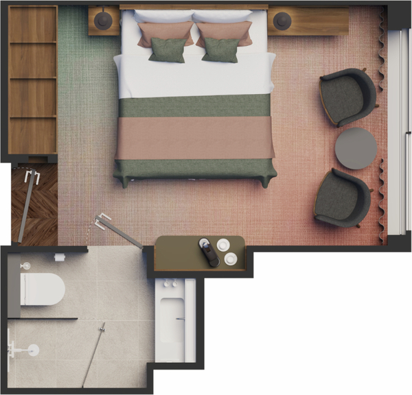 Zimmer mit Dusche/WC, Fön, Telefon, Flachbildschirm-TV, Kaffee-/Teezubereiter und kostenlosem WLAN. Gesamtzimmer 108, Parkplätze in begrenzter Zahl (ca. € 15,- pro Tag, nur während des Hotelaufenthalts). Verpflegung: Frühstück in Buffetform.