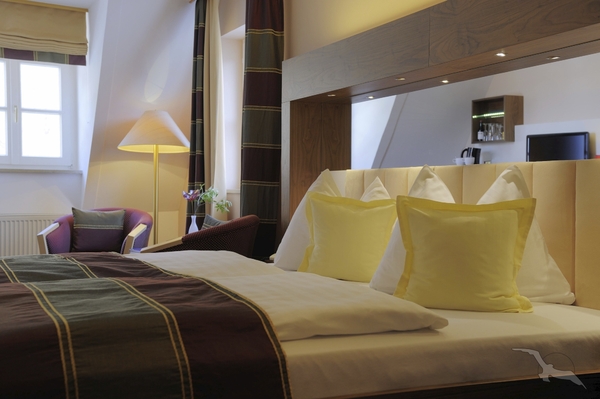Familiär geführtes Hotel in einem historischen Gebäude aus dem 14. Jahrhundert. Mitten in der Altstadt (zwischen Dom und Fußgängerzone) gelegen. Zimmer hell eingerichtet mit Dusche/WC, Fön, Telefon, Flachbildschirm-TV, Minibar, Safe, Schreibtisch und kostenlosem WLAN. Komfortzimmer bei gleicher Ausstattung etwas größer, zur Altstadt oder Innenhof gelegen. Luxuszimmer am größten, mit Dusche oder Badewanne, zusätzlich mit Kaffee-/Teezubereiter. Zur Altstadt oder Donau gelegen. Gesamtzimmer 39, Frühstückraum, Hotelbar, kleiner Wellnessbereich mit Sauna & Whirlpool. Verpflegung: Frühstück in Buffetform.