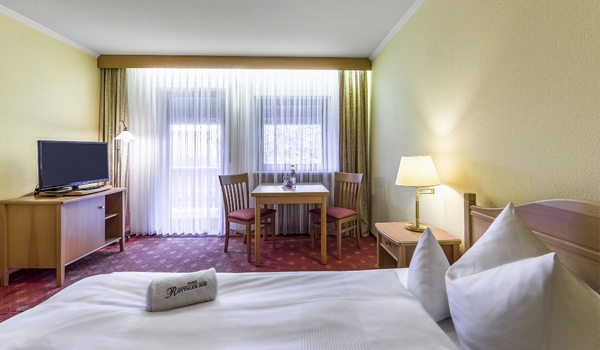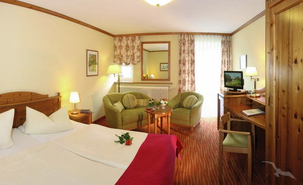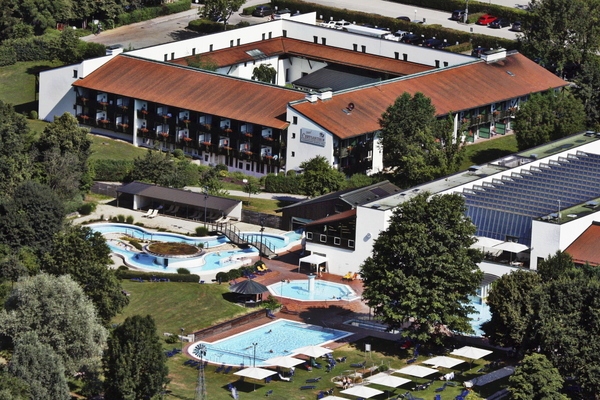 Ruhiges Wellness- und Gesundheitshotel mit "Bademantelgang" zur Rottal-Terme. Nur wenige Gehminuten zum historischen Zentrum von Bad Birnbach. Komfortzimmer im Erdgeschoss mit Balkon oder Terrasse, Bad mit Dusche/WC, Fön, Telefon, Flachbildschirm-TV/Radio, Minibar, Wasserkocher, Safe, kostenlosem WLAN und Badetasche. Galerie-Deluxe-Zimmer (auf 2 Ebenen) modern, großzügig mit mehr Komfort (zusätzlich Kaffee- & Teezubereiter und 2. TV auf der Galerie). Gesamtzimmer 78, Restaurant mit Terrasse, Bar/Clublounge, Lift, kostenlose Parkplätze (nach Verfügbarkeit). Massagen & Krankengymnastik gegen Aufpreis. Verpflegung: Frühstücksbuffet. Abendessen (4-Gang-Menü) auf Wunsch vor Ort buchbar.