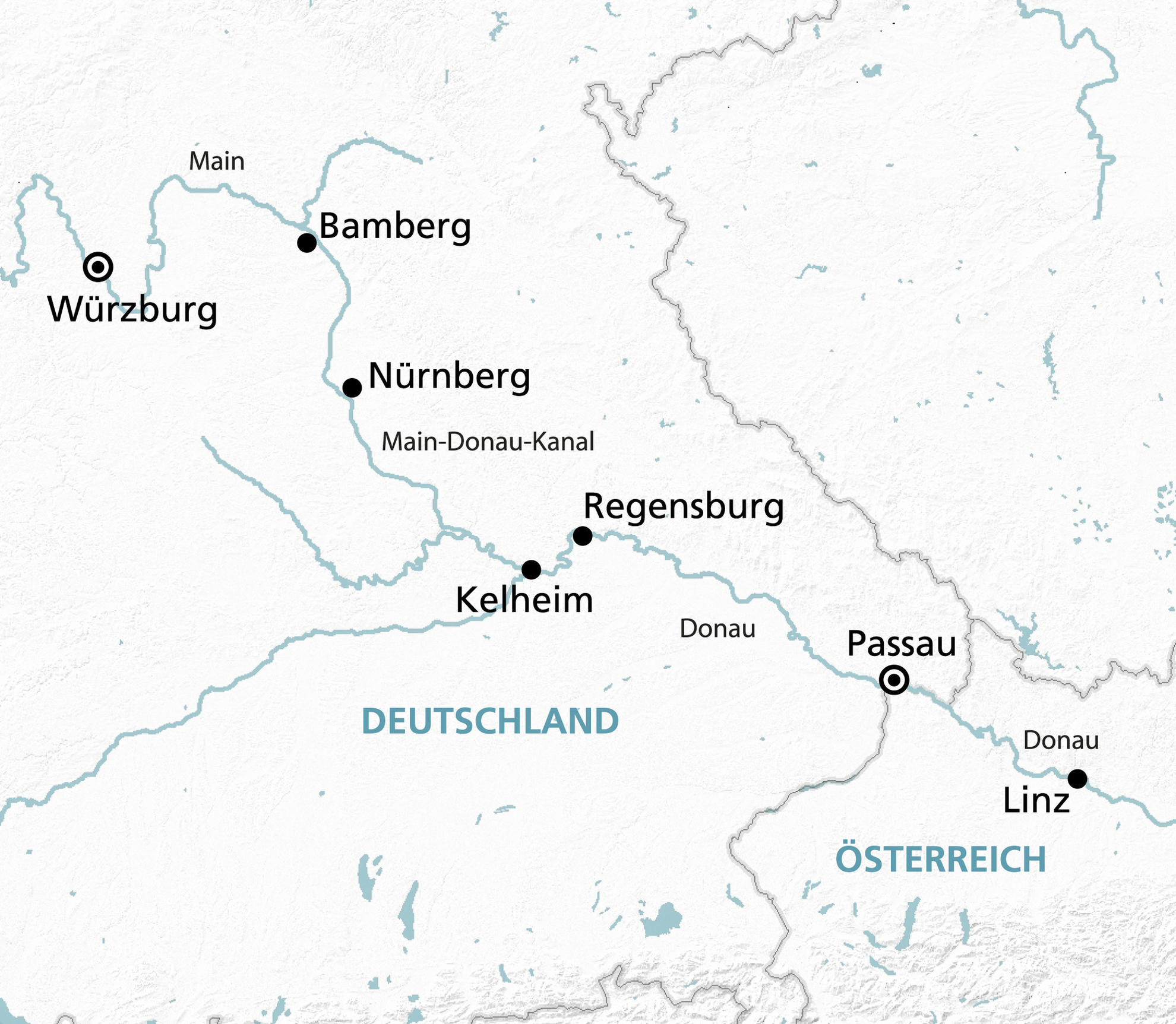 Würzburg - Bamberg - Nürnberg - Kelheim - Regensburg - Linz - Passau