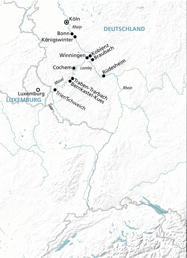 Köln - Rüdesheim - Koblenz - Trier/Schweich - Köln