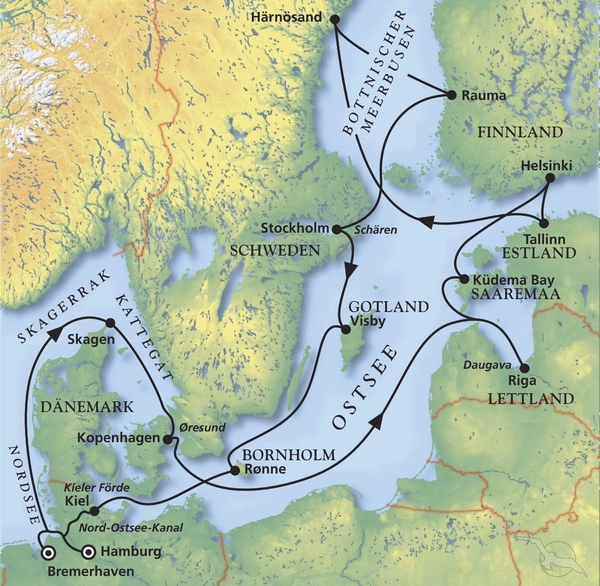 Hamburg - Skagen - Riga - Helsinki - Tallinn - Rauma - Stockholm - Visby - Rønne - Kiel - Bremerhaven