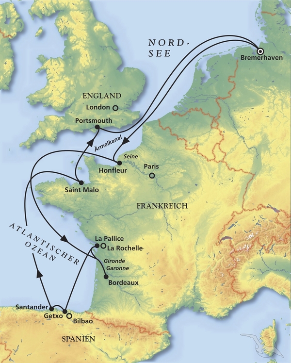 Bremerhaven - Honfleur - Bordeaux - La Pallice - Getxo - Santander - Saint-Malo - Portsmouth - Bremerhaven