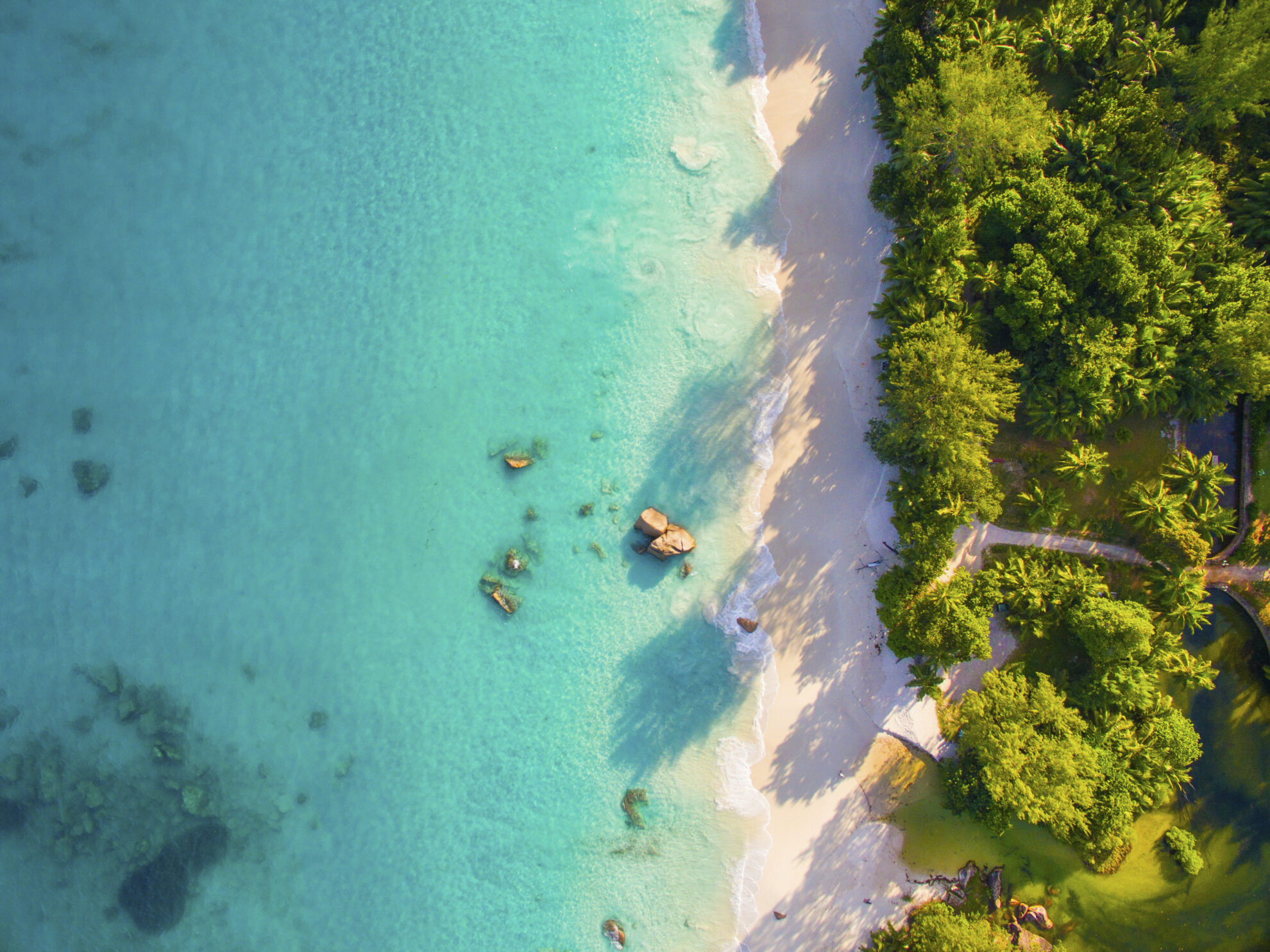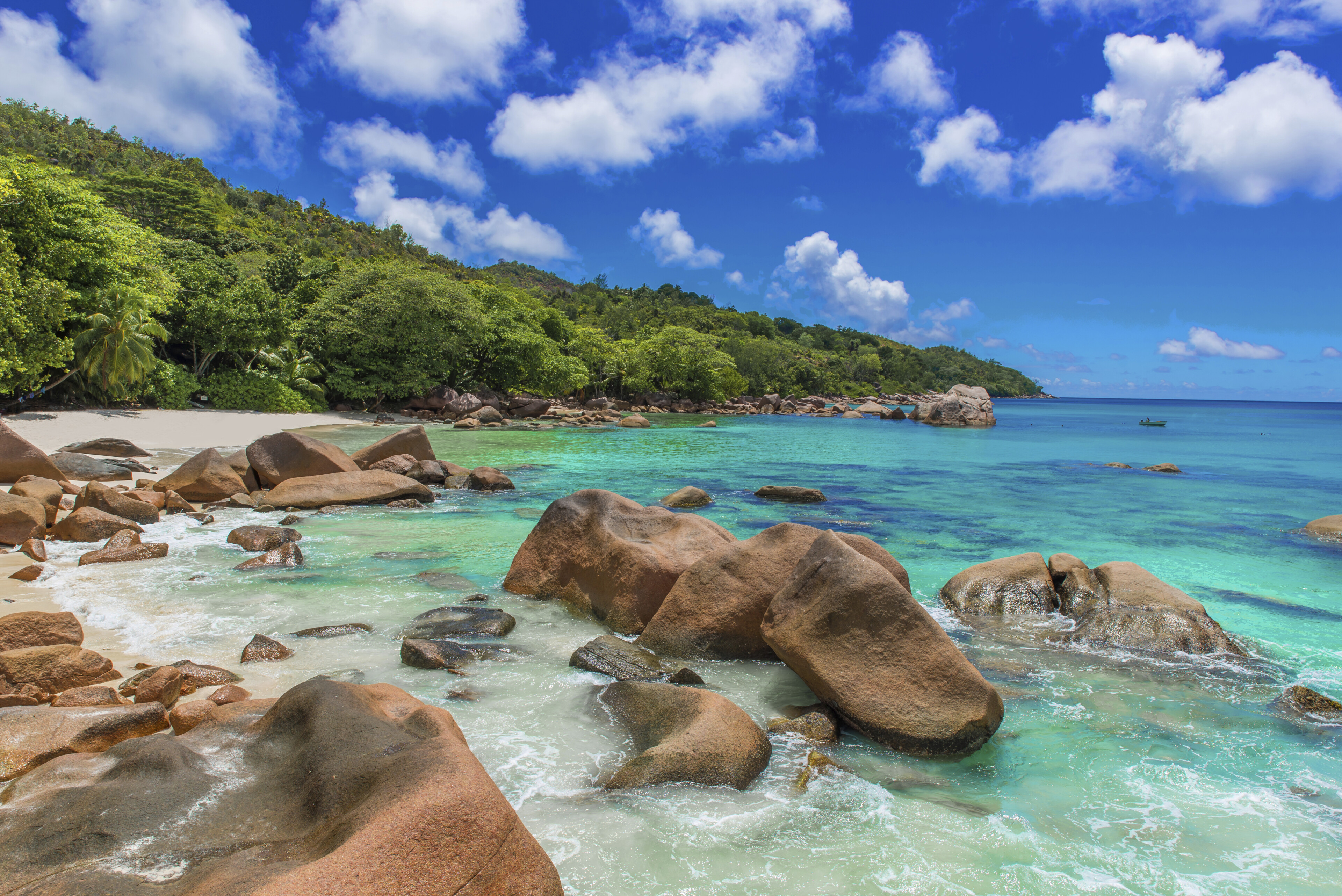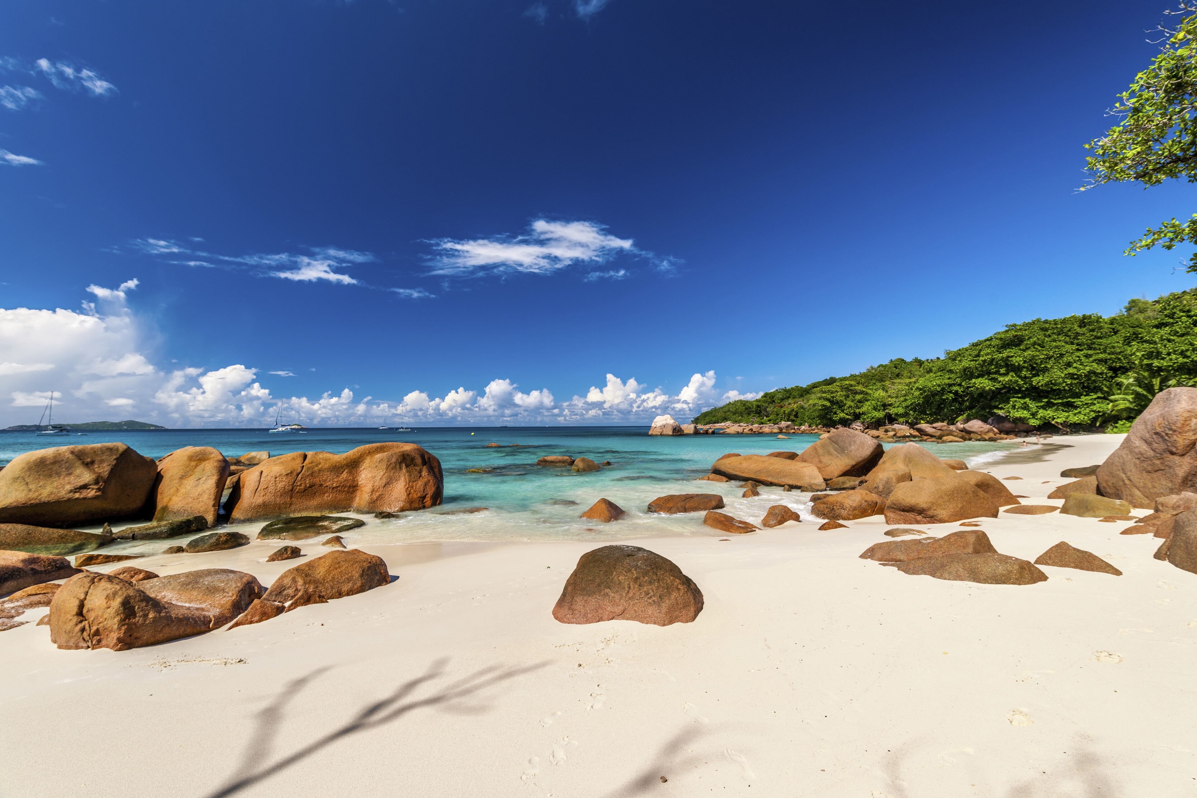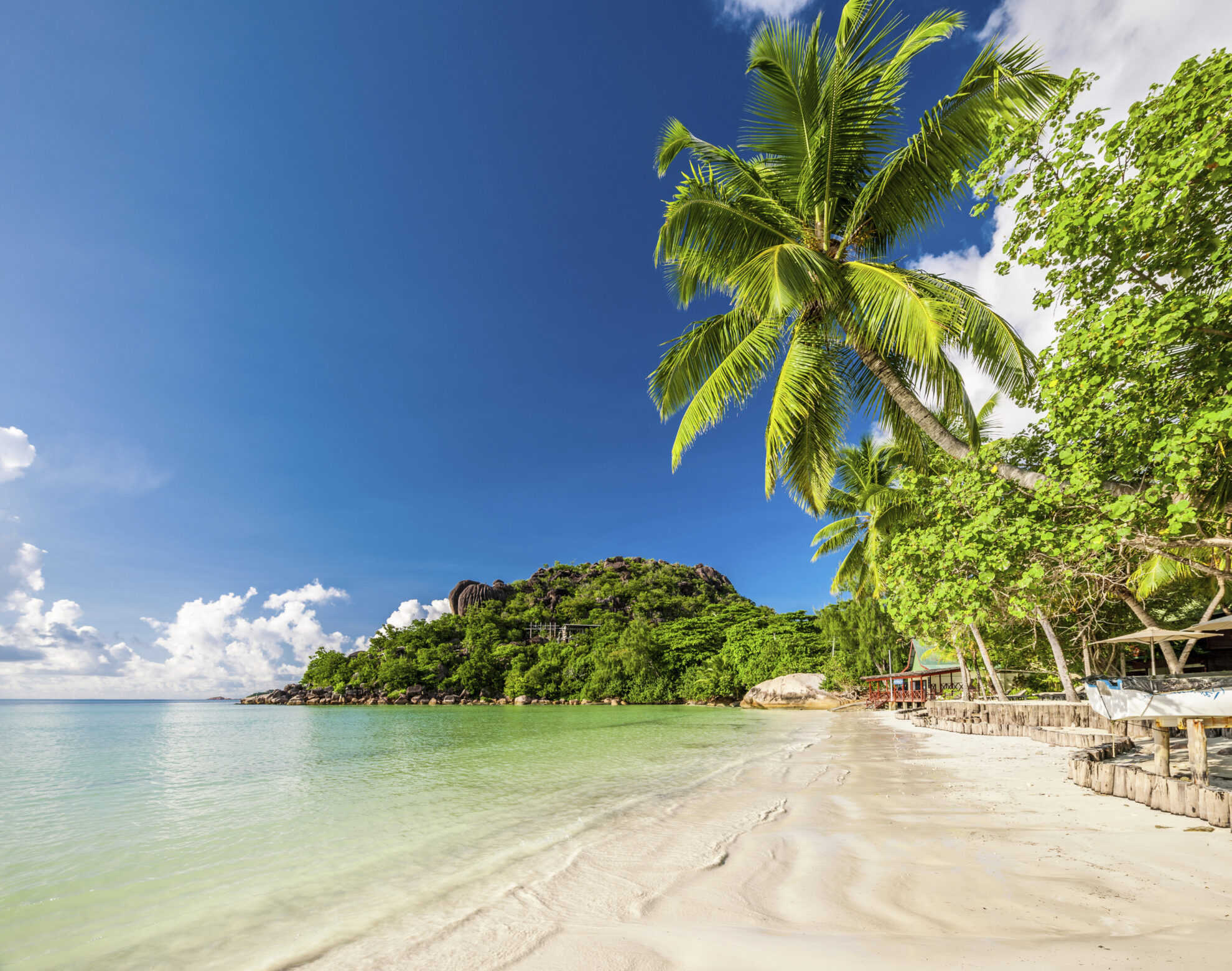 Praslin verzaubert mit puderzuckerweißen Stränden, türkisfarbenem Wasser und üppiger Tropenvegetation. Die Insel gilt als Juwel der Seychellen – entspannt, exklusiv und von natürlicher Eleganz geprägt. Zwischen Granitfelsen und Palmen entfaltet sich eine Bilderbuchkulisse, die Ruhe, Luxus und ursprüngliche Schönheit harmonisch vereint.