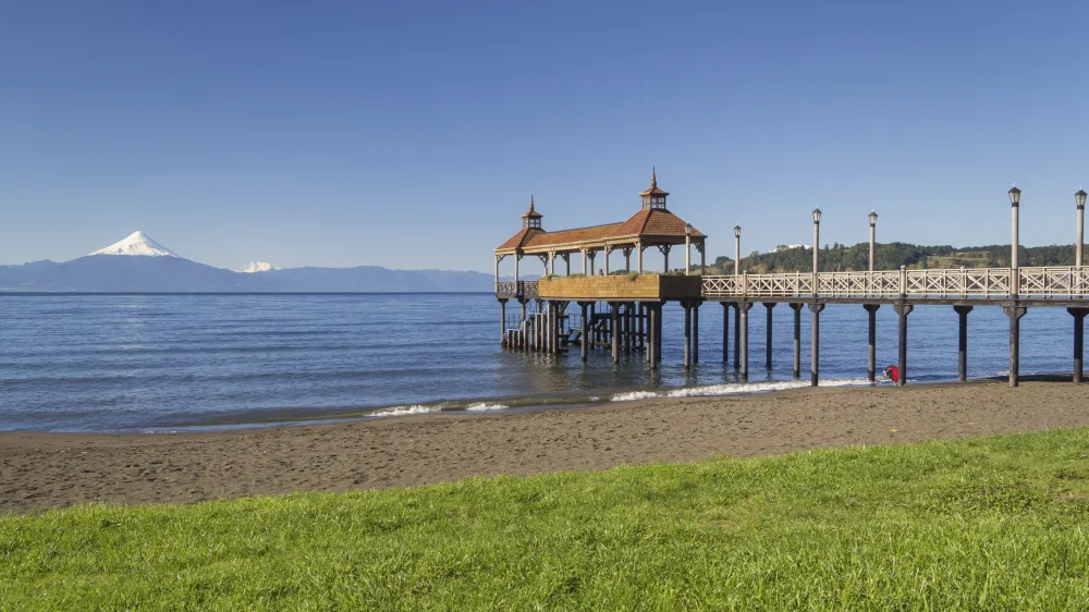 Die chilenischen Seen Llanquihue und Lago Todos Los Santos waren ursprünglich ein riesiger See. Durch die Entstehung des Vulkans Osorno wurden die beiden Seen getrennt. Der Llanquihue-See ist mit über 870 Quadratkilometern der zweitgrößte See Chiles. Besonders das Westufer des Sees ist heute besiedelt. Besuchen Sie den am Westufer gelegenen Ort Frutillar, von dem aus Sie einen malerischen Blick auf den See genießen können. Frutillar unterteilt sich in zwei Gebiete, Frutillar Alto und Frutillar Bajo. Vor allem letzteres besticht durch seine Kolonialbauten aus dem 19. Jh. und die wunderschöne Uferpromenade. Besuchen Sie das Museum der Deutschen Einwanderer und erfahren Sie alles über die alte Siedlung mit bezaubernden Gärten und altem Baumbestand sowie über die Lebensweise der deutschen Siedler im 19. Jahrhundert. Auch die kleine Stadt Puerto Varas ist einen Besuch wert. Vor einer traumhaften Kulisse gelegen, blicken Sie von hier über den Llanquihue-See bis zum Vulkan Osorno. Oftmals ist die Spitze des Vulkans von Schnee bedeckt, so entsteht ein schöner Kontrast zu dem tiefblauen See. Puerto Varas ist ein idyllischer kleiner Ort, der deutlich von deutschem Erbe gekennzeichnet ist. Sowohl die Architektur als auch das Kuchen-Angebot erinnern an ein süddeutsches Dorf. Sehen Sie außerdem den Lago Todos Los Santos. Der „Allerheiligensee“ ist ebenfalls umgeben von hohen Bergen, dicht bewaldeten Abhängen und dem Vulkan Osorno, der den Lago Todos los Santos und Llanquihue-See trennt.