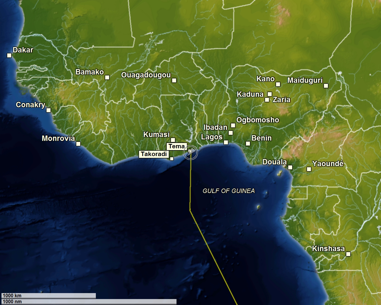Hamburg - Kapstadt - Durban - Victoria - Colombo - Singapur - Hongkong - Seoul - Tokio - Honolulu - San Francisco - Vancouver - Acapulco - Panama-City - Miami - New York - Bremerhaven